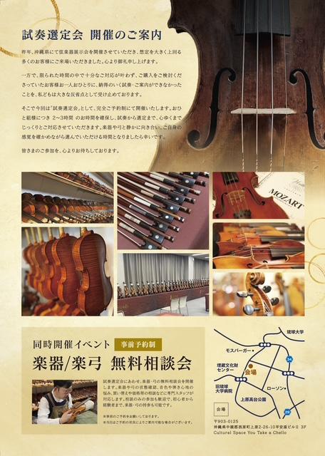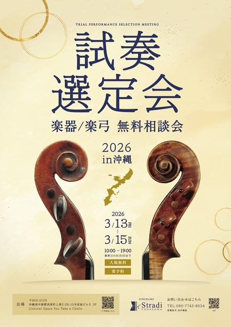 このたび弦楽器専門店ストラディ金沢では、 沖縄にて楽器・弓の試奏選定会を開催いたします。