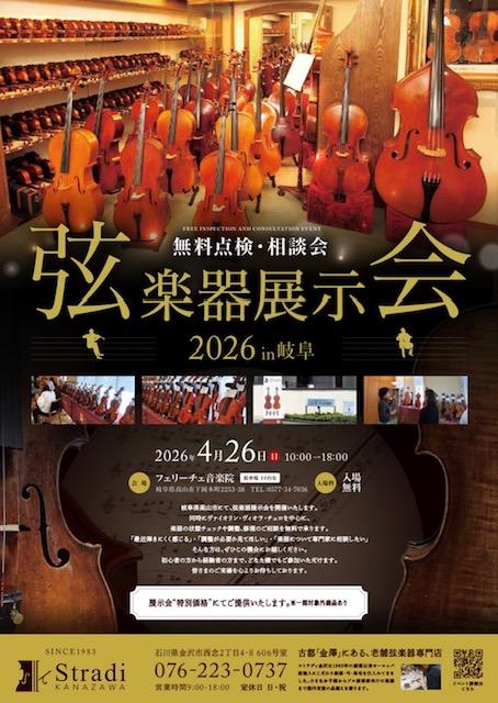 2026年4月26日(日)に 岐阜県高山市にて「弦楽器展示会・無料点検相談会」 を開催いたします。