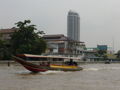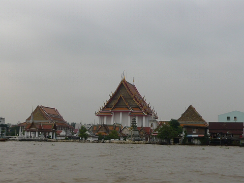 チャオプラヤ川(メナム川)の遊覧船から見た風景。