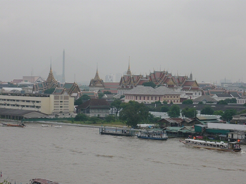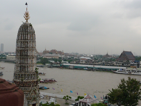 大仏塔より見たチャオプラヤ川(メナム川)。対岸にワット・ポー、王宮、エメラルド寺院などが見えます。