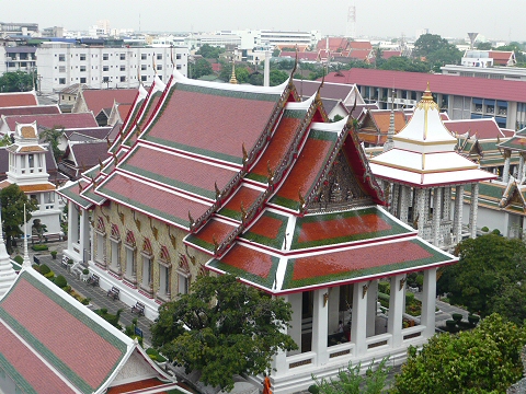 通称、エメラルド寺院(ワット・プラケオ)。1782年、チャクリ王朝始祖ラーマ1世はトンブリーの対岸にあるバンコクに遷都。1784年に王朝の守護寺としてワット・プラケオを建立しました。当時の建築技術を最大限に利用して建設されたもので、王宮敷地内にありプロマピマーン宮殿やチャクリー宮殿などと接しています。王室専用の仏教儀式の場であり、タイで最も格式が高い寺とされています。現在は観光地にもなっています。落成時に、ワット・アルン(暁の寺)にあった小さなエメラルド色の本尊がワット・プラケオの本堂に移され、現在も厚い信仰を受けています。