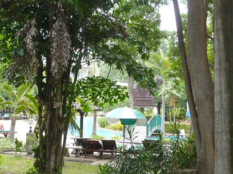 パタヤで宿泊したホテル、グリーンパークリゾート・パタヤです。木々に囲まれた広いプールがあり、のんびりとくつろげました。