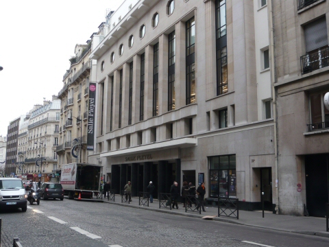 世界的なピアノメーカー「プレイエル」の専用コンサートホールです。ショールームも併設されています。1830年、プレイエル社の二代目社長カミーユ・プレイエルによって、自社製品の宣伝ならびに演奏家後援を目的としてオープンしました。当時の建物ではショパンをはじめとする偉大なピアニスト達がコンサートを開きました。1924年に現在の場所に移転した後、火災による消失、プレイエル社の経営破綻、他社による買収と紆余曲折があったそうです。1998年に「サル・プレイエル」を買収したユベール・マルティ二氏が、2000年にプレイエル社も買収しました。その結果、1928年以来70年ぶりに「サル・プレイエル」とプレイエル社は一体になりました。その後、改修工事が行われてエントランスや内装が1927年当時に復元され、2006年にリニューアル。2007年にはプレイエル社創業200年記念式典がここで行われました。