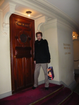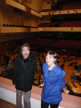 Salle Pleyelを案内していていただいたシャルロットさん。ご多忙のところ、ホール内を案内していただきました。彼女はプレイエル社の社員で、日本へは観光旅行で一度来て、京都や奈良を楽しんだそうです。なお、ホール内へ演奏会以外で外部の人間を入れることはあまりないそうです。