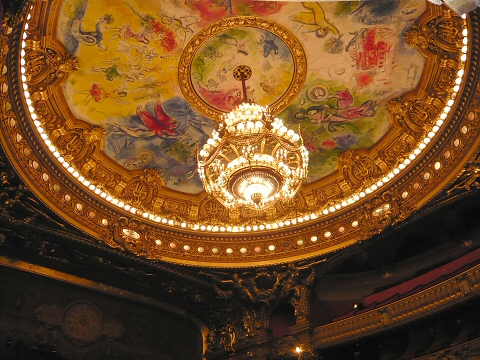 現在の天井画は、1964年にマルク・シャガールが描いたものです。元の天井画はジュール=ユジェーヌ・ルヌヴ(Jules