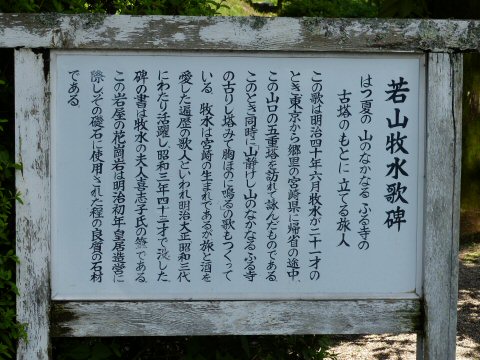 若山牧水(1885-1928、わかやま・ぼくすい。本名:若山繁=しげる)の歌碑、説明板。